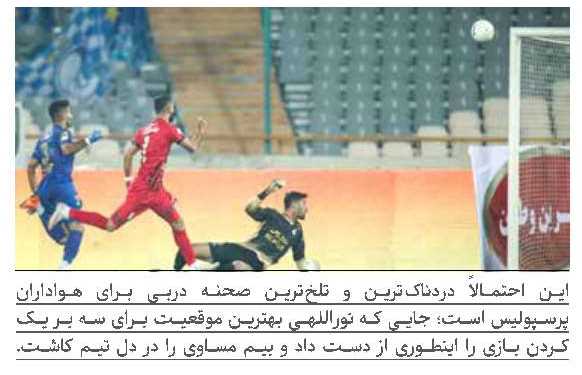 جدا از دو موقعیت نصفه و نیمهای که این بازیکن داشت، دو موقعیت طلایی و صددرصد را از دست داد تا یک برد درخشان و خاطرهانگیز در دربی را از پرسپولیس بگیرد.