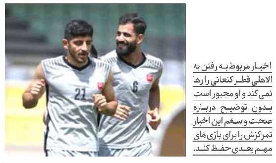 نشریه «الرایه» قطر که حدود دو ماه است اخباری درباره انتقال کنعانی به الاهلی را منتشر میکند خبر داد حسین کنعانیزادگان مدافع تیم ملی ایران و عضو باشگاه پرسپولیس تا چند روز آینده به دوحه میآید تا در تست پزشکی الاهلی شرکت کند و قراردادش را به صورت رسمی امضا کند. طبق اعلام این رسانه و یک رسانه دیگر قطری کنعانی پیش از این توافقات نهایی را برای امضای قرارداد 3 ساله با الاهلی انجام داده و حضور او در دوحه قطعی است.این ادعای نشریه قطری در حالی مطرح میشود که پرسپولیس پنجشنبه پیش رو یک بازی حساس در دربی مقابل استقلال دارد و 3 بازی از لیگ برتر نیز باقی مانده است.